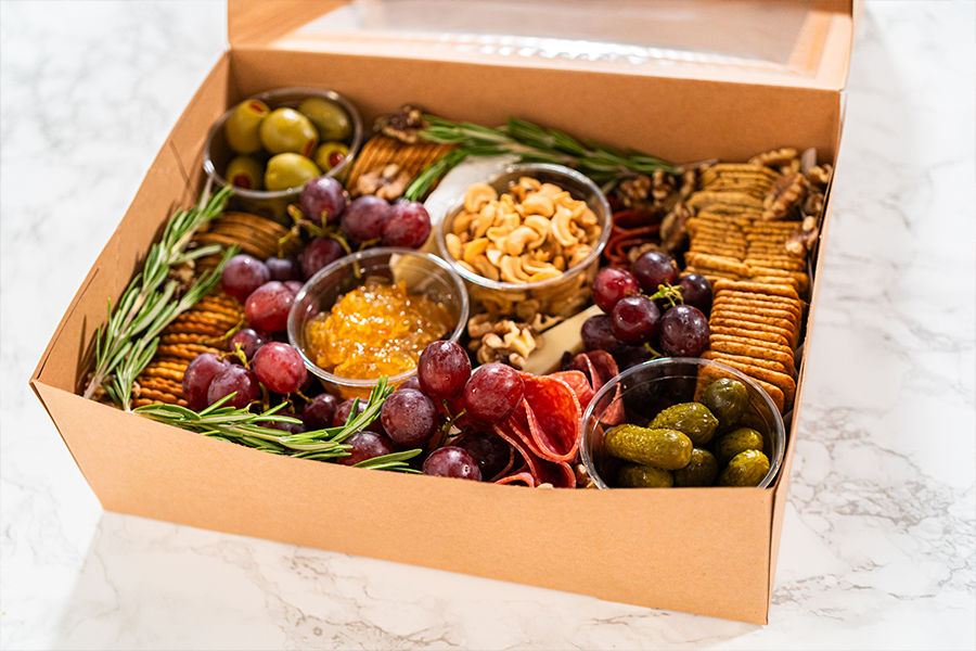 Seasonal cheeses, cornichons, selection of meat, vegetables paired with a selection of chocolate